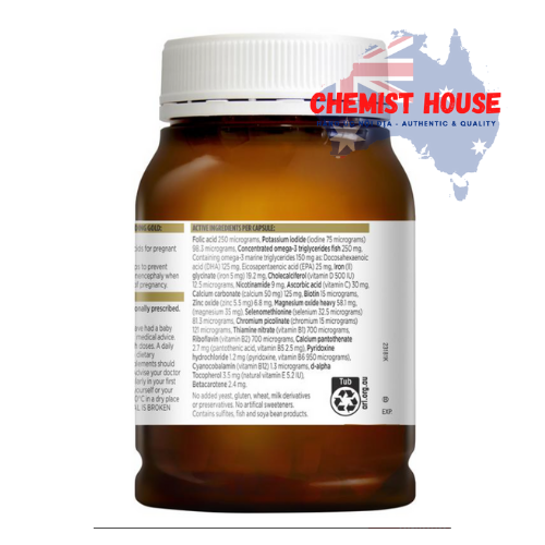 Blackmores Pregnancy and Breast-Feeding Gold đã được phát triển dựa trên nhu cầu dinh dưỡng của phụ nữ mang thai và cho con bú tại Úc để giúp hỗ trợ bổ sung dinh dưỡng dưới dạng một viên nang nhỏ dễ nuốt hơn. Sản phẩm chứa 20 chất dinh dưỡng quan trọng bao gồm 12 vitamin, 7 khoáng chất và acid béo omega-3 không mùi. Ngoài ra sản phẩm còn cung cấp lượng iod và acid folic hàng ngày dựa trên hướng dẫn bổ sung cho phụ nữ mang thai.