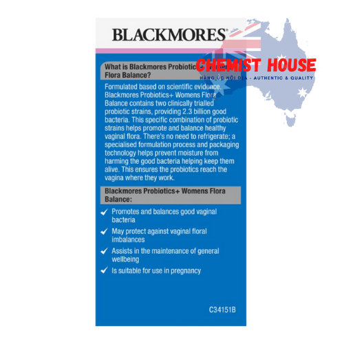 - Bio Balance Blackmores của phụ nữ chứa probiotic được thiết kế đặc biệt cho sức khoẻ của âm đạo.