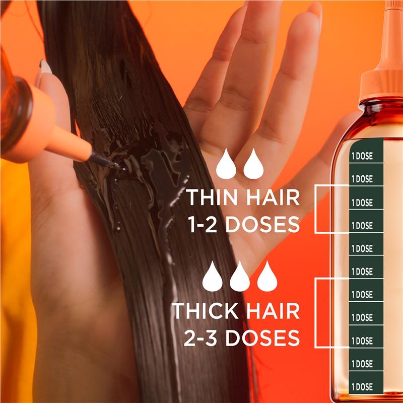 2. Thoa lên phần tóc dài. Tóc mỏng: 1 lần | Tóc trung bình đến dày: 2-3 lần | Tóc dài: Thêm +1 lần