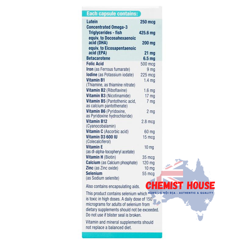 - Elevit Breastfeeding cung cấp hàm lượng Omega-3 (DHA) cao, chất Beta Caroten có trong thuốc sẽ giúp bé phát triển toàn diện về não bộ và thị lực.