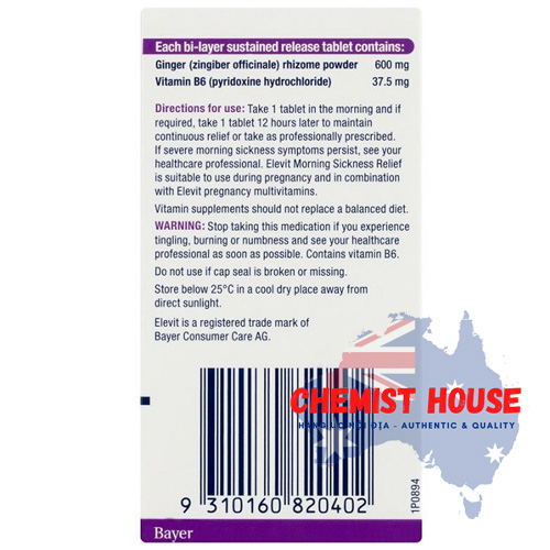 - Elevit Morning Sickness Relief thuộc nhà sản xuất Elevit nổi tiếng số 1 ở Úc về sản phẩm bổ sung vitamin cho phụ nữ mang thai.