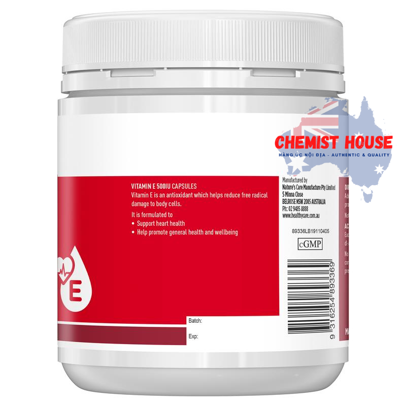Healthy Care Vitamin E 500IU - Viên uống bổ sung vitamin E 200 viên