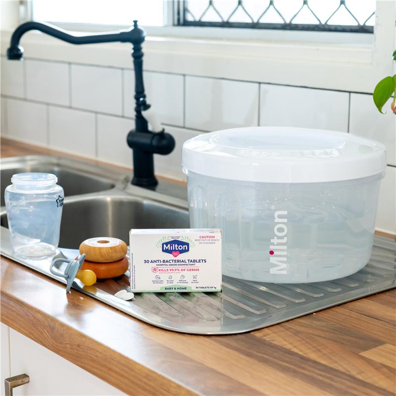 Milton, chuyên gia về tiệt trùng nước lạnh cho dụng cụ cho bé bú trong hơn 70 năm. Sử dụng trong Phương pháp tiệt trùng nước lạnh, tiệt trùng chỉ trong 15 phút và tiêu diệt 99,9% vi khuẩn.