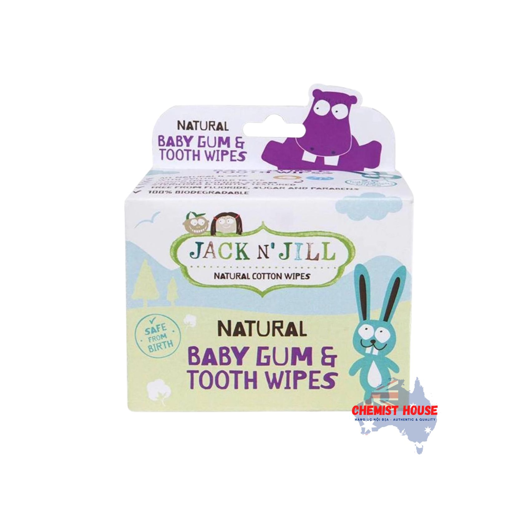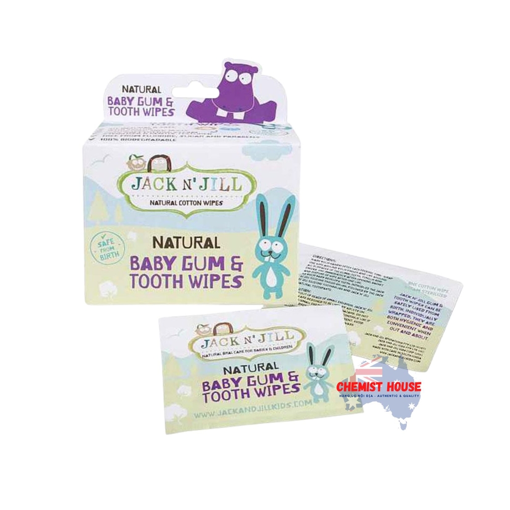 Tên Sản Phẩm: 25 Miếng Giấy Ướt Rơ Lưỡi, Chà Nứu, Chùi Răng, Vệ Sinh Răng Miệng Cho Bé 100% Cotton Mềm Không Chứa Fluoride, Dường và Paraben - Jack N Jill Tooth & Gum Wipes 25 Pack