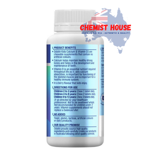 ● Ostelin Calcium & D3 hộp 90 viên dành cho trẻ em từ 2-13 tuổi. Hàm lượng canxi (350mg), vitamin D3 (300IU) cần thiết hỗ trợ xương và răng, giúp phát triển chiều cao tối ưu, đồng thời tăng miễn dịch và sức khỏe nói chung.