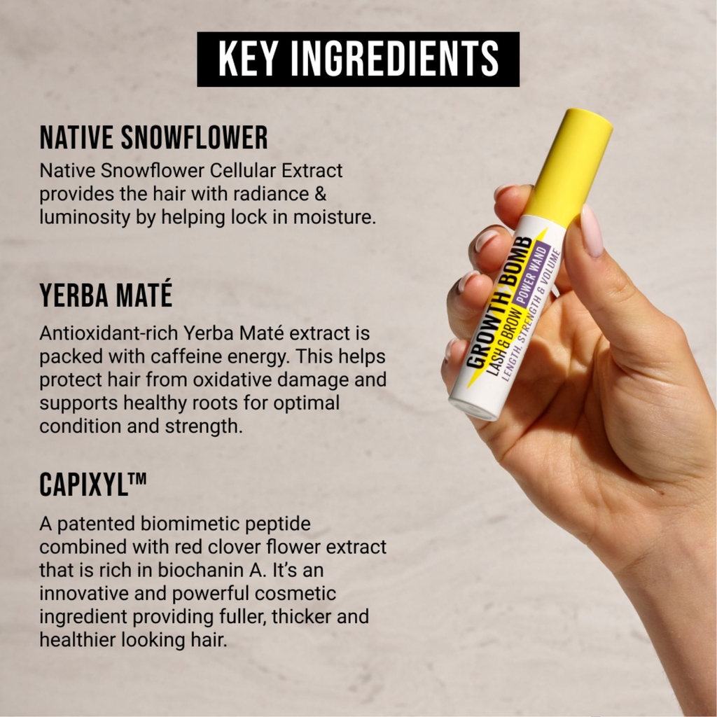 - Huyết thanh tăng cường Growth Bomb cho lông mày và lông mi đầy đặn, khỏe mạnh và dày hơn.