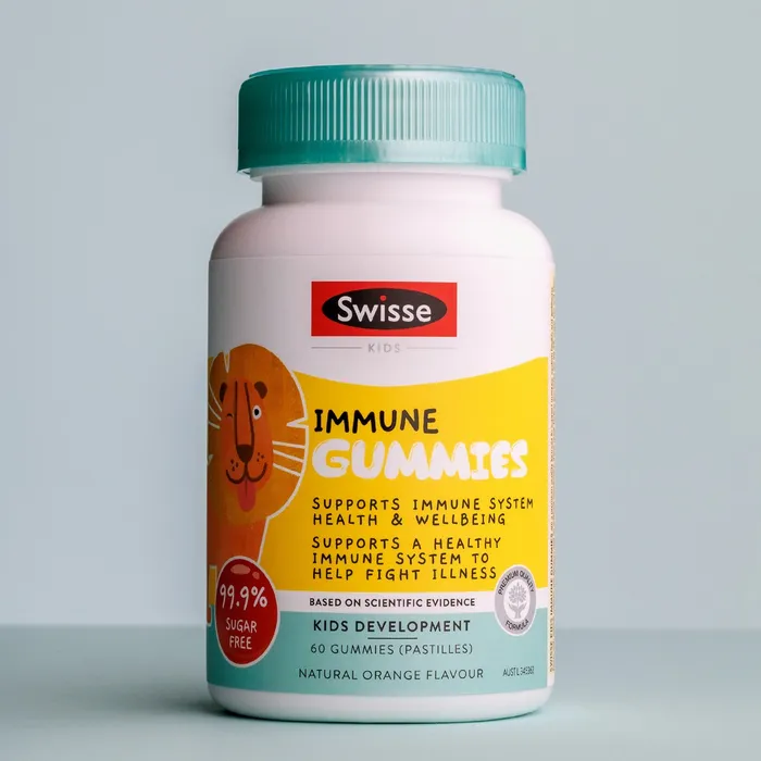 Swisse Kids Immune Health chứa vitamin C và kẽm để hỗ trợ sức khỏe hệ thống miễn dịch và kích thích phản ứng miễn dịch khỏe mạnh ở trẻ em. Viên nhai thơm ngon này không chứa 99,9% đường và không thêm màu nhân tạo.