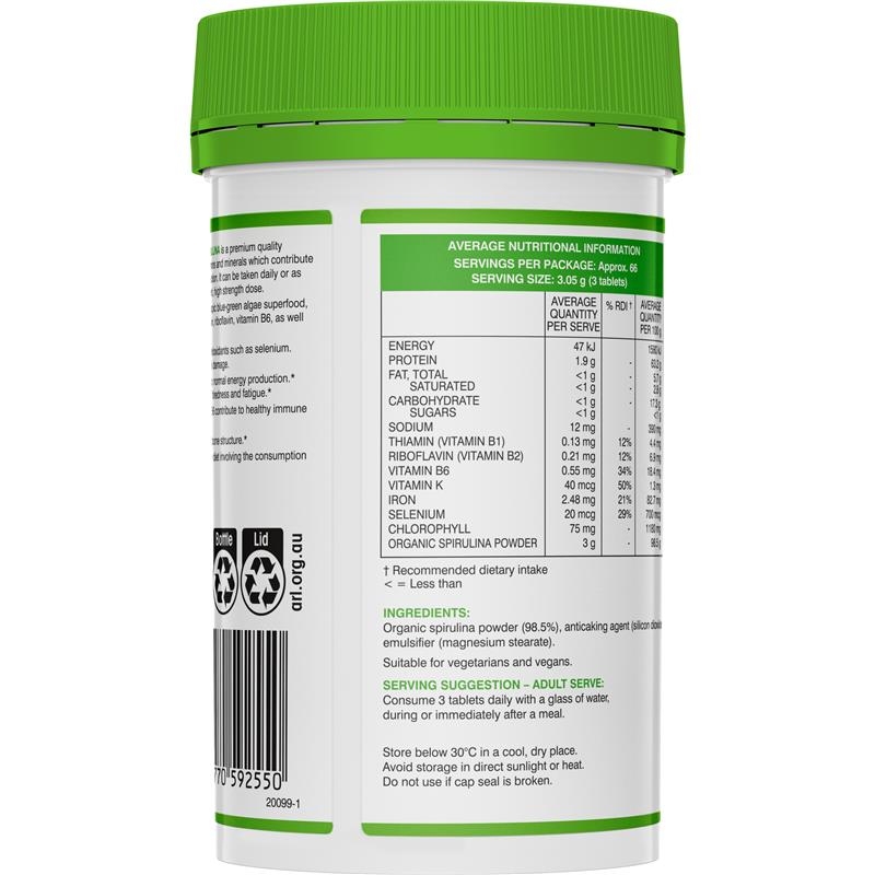 - Swisse High Strength Organic Spirulina là công thức chất lượng cao có chứa tảo xoắn hữu cơ, một siêu thực phẩm xanh cung cấp nguồn vitamin, khoáng chất và chất chống oxy hóa tự nhiên. Có sẵn ở liều lượng cao, sản phẩm cung cấp nguồn dinh dưỡng toàn phần hỗ trợ sản xuất năng lượng, chức năng miễn dịch, cấu trúc xương và sức khỏe hệ thần kinh.