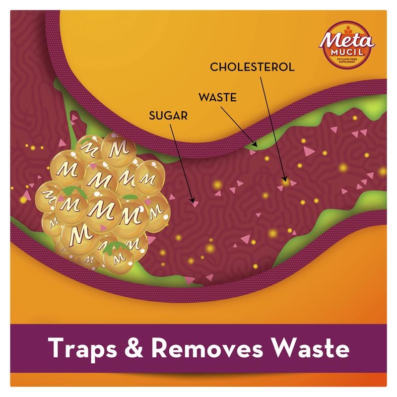 - Metamucil 4 trong 1 Multi-Health Fibre Metamucil daily cleanser giúp: Hỗ trợ sức khỏe đường ruột, Hỗ trợ sự đều đặn, Bẫy cholesterol, Bẫy đường Metamucil được làm từ 100% Psyllium tự nhiên. Không chứa chất kích thích hóa học, không thêm đường và không chứa gluten. LUÔN ĐỌC NHÃN VÀ LÀM THEO HƯỚNG DẪN SỬ DỤNG. Bắt đầu ngày mới đúng cách với Metamucil và cải thiện sức khỏe của bạn theo 5 cách