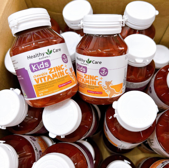 - Viên nhai bổ sung Healthy Care Zinc + Vitamin C Chewable có hương vị dâu tây ngon, hỗ trợ đề kháng, phòng ngừa bệnh cảm cúm thông thường, giúp bé ăn ngon, hấp thu tốt.