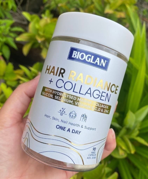 BIOGLAN Hair Radiance + Collagen được bào chế với Collagen thủy phân từ biển của Na Uy được làm giàu với Silicon, Selenium, Kẽm & Vitamin B, C, D để cung cấp dưỡng chất cho tế bào da, nang tóc và móng tay.