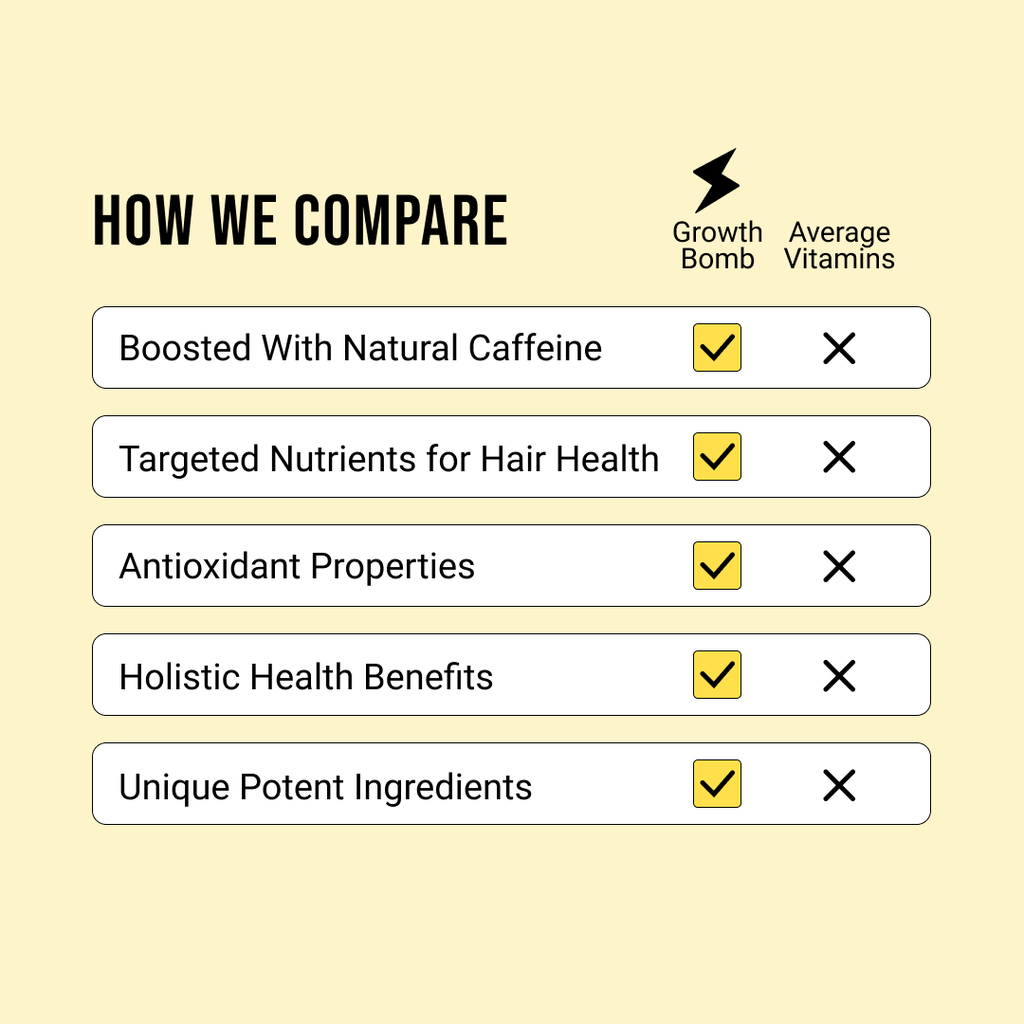 - Sử dụng với toàn bộ dòng sản phẩm bombin' của Growth Bomb để có kết quả sức khỏe tóc tối ưu.