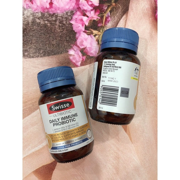 Swisse Ultibiotic Daily Immune Probiotic hỗ trợ sức khỏe hệ thống miễn dịch và giúp giảm các triệu chứng cảm lạnh thông thường, chẳng hạn như sổ mũi, đau họng và nghẹt mũi. Loại thực phẩm bổ sung tiện lợi, không cần tủ lạnh này kết hợp hai chủng* đã được thử nghiệm lâm sàng - Lactobacillus plantarum (HEAL 9) và Lactobacillus paracasei (8700:2) - được bào chế đặc biệt để hỗ trợ hệ thống miễn dịch giúp chống lại bệnh tật. * Berggren và cộng sự. (2011) Nghiên cứu ngẫu nhiên, mù đôi và kiểm soát giả dược sử dụng lợi khuẩn lactobacilli mới để tăng cường khả năng phòng vệ miễn dịch của cơ thể chống lại nhiễm virus, Eur J Nutr 50(3):203-10. Busch và cộng sự. (2013) Nghiên cứu ngẫu nhiên, mù đôi và có đối chứng giả dược sử dụng kết hợp hai loại vi khuẩn Lactobacilli có lợi để giảm bớt các triệu chứng và tần suất cảm lạnh thông thường, Khoa học thực phẩm và dinh dưỡng, 4, 13-20.