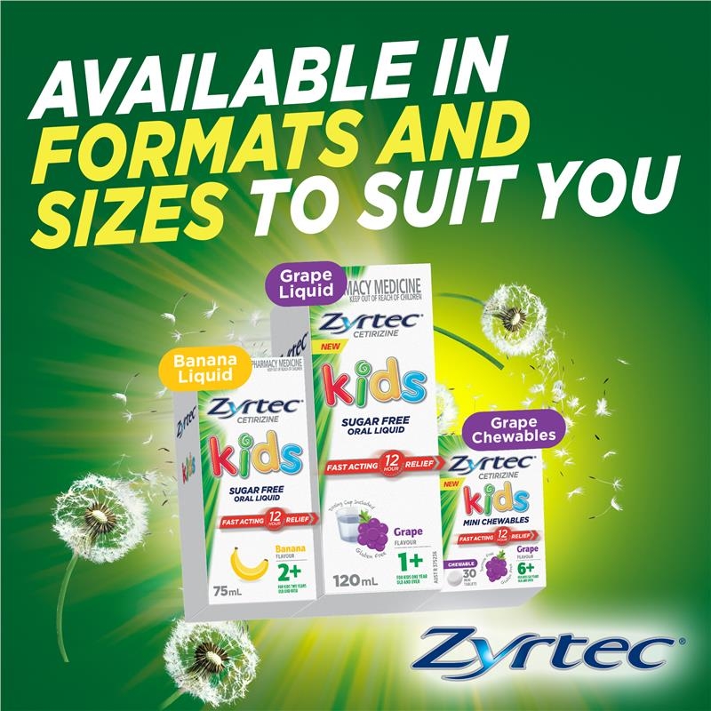 Zyrtec Kids có hiệu quả chống lại bệnh sốt theo mùa và các tác nhân gây dị ứng quanh năm, chẳng hạn như: